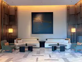 After taking the elevator to the registration floor, the excitement of Hyatt Regency Changshu Kuncheng Lake officially begins. [Skyline Lobby] has a breathtakingly wide view. Standing here, it feels like standing in the clouds. The prosperity and skyline of the entire city are in full view, making people forget the hustle and bustle of the city in an instant.