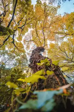 sunlight filters through the gaps in the branches,