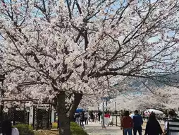 The Jinhae Gunhangje Festival is a famous cherry blossom festival held every spring in Jinhae, South Korea. During the festival, the whole city is covered with beautiful pink cherry blossoms. People visit to walk along pretty spots like Yeojwacheon Stream and Gyeonghwa Station, take photos, and enjoy street food and cultural shows.