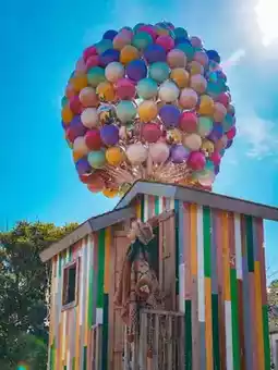 The yellow train passing through the ginkgo forest, one-way 30, round trip 40. The balloon flying house can also be seen here.