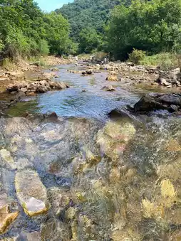 The stream is shallow and clear, and there are trees like the Wizard of Oz everywhere.