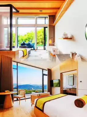 The hotel experience is rich, not only has the "floating infinity pool" facing the outdoors, but also the soft green lawn, whether it is team building, camping or a concert on the lawn, it is an excellent choice. The gym, indoor children's playground, mid-mountain tea room and other facilities are all available to meet your vacation needs in all aspects. There are also many water activities, why not try a kayak or paddle board experience, and enjoy the excitement and coolness in the summer.