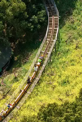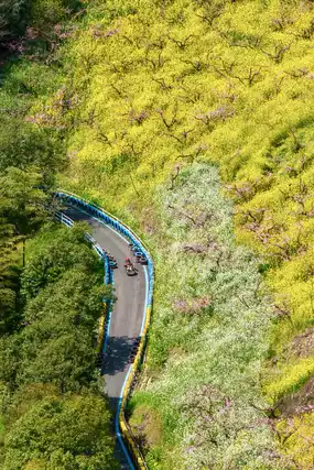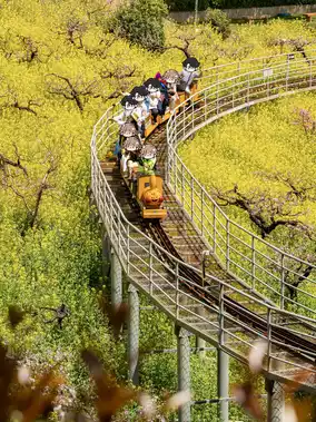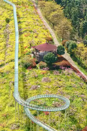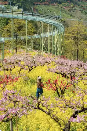 Ticket check ➠ Take a sightseeing car ➠ Take a polar slide ➠ See a thousand acres of peach blossom sea ➠ Aerial train to see the sea of rapeseed flowers ➠ Ride the flying magic blanket to the top ➠ Cloud rafting ➠ Flower and Fruit Mountain Park ➠ Island Coffee