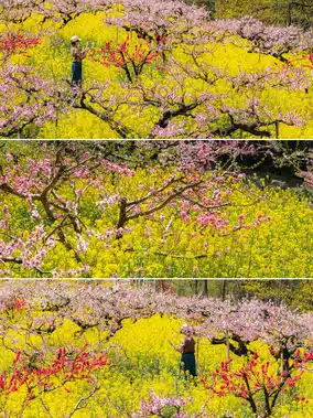 And Huzhou is a sea of peach blossoms + rapeseed flowers