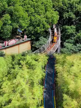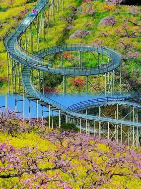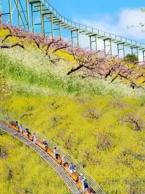 2. Alpine slide through the flowers: Don't miss the 800-meter alpine slide! Whiz down from the mountaintop, through vibrant flower fields and tranquil bamboo tunnels, arriving at the heart of the peach blossom fields. Unleash your inner speed demon!