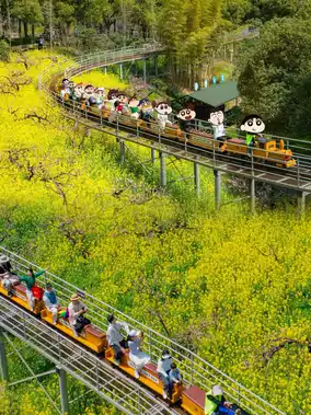 ✅ Aerial Train: Take this little train that shuttles through the fairy tale world and enjoy the stunning scenery of rapeseed fields and peach blossoms along the way, as if you are in animation.