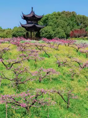 🌸Have you ever taken such a little train here in Hangzhou? The little train slowly moved through the sea of golden rapeseed flowers, as if it transported us into the wonderful world of Hayao Miyazaki's animation. Rapeseed flowers and peach blossoms are in full bloom all over the mountains and plains, creating a colorful oil painting that is intoxicating.