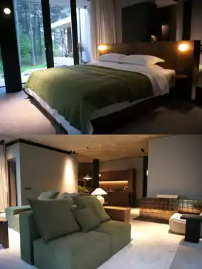 • Breathtaking Views: Floor-to-ceiling windows bring the mountain scenery indoors, allowing you to enjoy nature’s beauty from your bed, as if merging with the great outdoors.