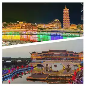 ✅ Wanfo Pagoda Night View: The landmark building of the ancient town, with golden lights on the tower and red lanterns. Stand on the commercial street and use the lanterns as foreground for instantly stunning ancient-style photos.