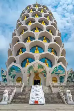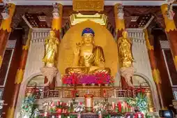 There are four major attractions in Baolin Temple. The first is the nine Nine Dragon Pillars. The "Nine Dragon Pillars" symbolize the royal dignity of Baolin Temple as a royal temple at that time; the second is the Guanyin Pavilion, which has a lotus-shaped bottom and is nearly 100 meters high, looking like a pure lotus bud about to bloom. The exterior is made up of 108 lotus-petal-shaped niches, each of which houses a golden Buddha Arhat, glittering in the sun. Finally, the Guanyin Pavilion houses the Three-Faced Ten-Directions Guanyin, surrounded by 9,999 miniature Guanyins. Although they are all newly built, they look spectacular. The Thousand-Handed Guanyin Hall houses a statue of the Thousand-Handed Guanyin with 1,999 hands, which is incredibly beautiful.