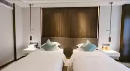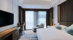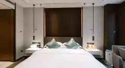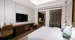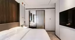 The external environment is located in Changzhou's new landmark, Changzhou Culture Square. The building's exterior is outstanding, and the interior environment also often plans various exhibitions from the first floor lobby. Let's talk about the internal accommodation experience and room hardware. The standard five-star configuration, tableware and tea sets are from Luzerne, a high-end hotel tableware brand in Singapore, equipped with Nestle capsule coffee machine, TV and air purifier are all from Panasonic, Japan, bathroom is American standards, toilet is American standard wall-mounted (about 2-5 k), mattress and pillows are very comfortable, don't know the brand;