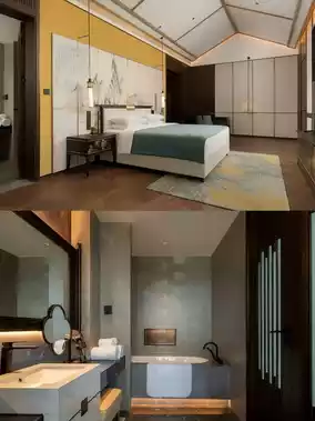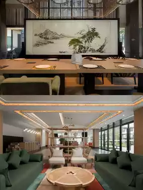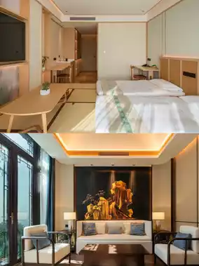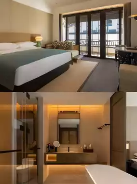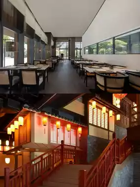 46 rooms are scattered throughout the garden courtyard, each with its own unique view. Huajianfu includes double rooms, family rooms, pet-friendly rooms, and private hot spring rooms. The lobby is suitable for both business and leisure.