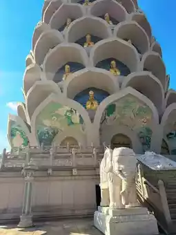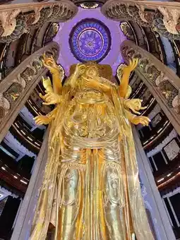 Baolin Guanyin Tower: Standing at 91.9 meters tall, it resembles a budding lotus. The exterior is composed of 108 lotus petals, each adorned with a copper-gilded Arhat. It presents different artistic conceptions during the day and night.