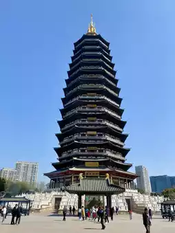 The pagoda of Changzhou Tianning Temple is over 150 meters high, making it the tallest among many pagodas in the country. Inside the Fanyin Pavilion of the Tianning Pagoda, a Brahma bell hangs at a height of 122 meters, which can be called the highest bell in the world.