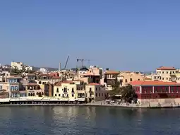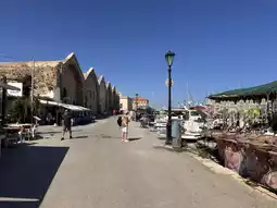 The embankment in Chania’s old town has a completely different energy from the quiet inner streets. It stretches along the harbor, with the sea on one side and a line of cafés, tavernas, and shops on the other. Walking there in the evening is especially nice, with people out for a stroll, kids running around, and the whole place buzzing with life.