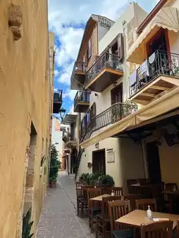 Traveling in Greece: Chania on Crete Island and Balos Pink Beach. Take an overnight ferry from Athens to Chania, the second largest city on Crete Island, known for its well-preserved old town and Venetian harbor. At sunrise, the ancient lighthouse at the Venetian harbor and the pink clouds look like a painting. On a city walk through Chania’s old town, the architecture blending Venetian and Ottoman styles and the narrow streets full of medieval charm make for a very pleasant stroll in the sea breeze.