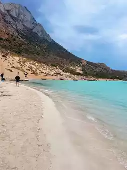 From the town of Kissamos, take a Jeep with eDay Travel Tours & More to Balos to check out the pink beach. Hiking to and from the beach from the mountaintop, experiencing strong winds, sun, rain, ever-changing weather, and sheep everywhere is a very unique experience.
