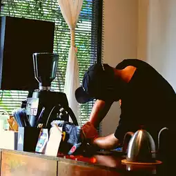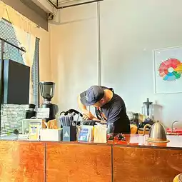 🌷 Mysterious but super delicious shop. I went to Chanthaburi and accidentally found this coffee shop. It's a small one-room shop, but when I talked to it, I knew that the owner was attentive, gave good advice, and spoke more politely than his appearance. So I tried ordering an iced latte. The coffee was fragrant and delicious. He was meticulous and skillfully ground by hand.