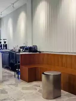 This small, stylish cafe emphasizes simplicity while delivering quality coffee. The coffee is excellent, aromatic, strong, and smooth in every cup.