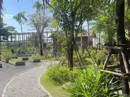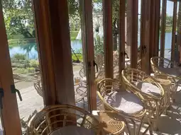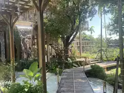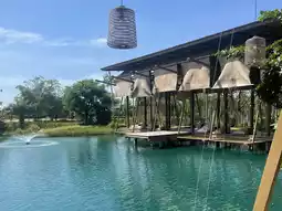 I love the riverside setting. 🏞️ They offer fish feeding. 🐠 You can heal yourself with the trees and flowers. 🌸 The bamboo walkway is designed to blend in with nature. The lighting in the evenings is probably even better. The atmosphere is excellent. The cafe is beautiful, spacious, and has plenty of seating in various corners. The coffee is fragrant and delicious.