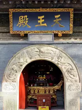 If you observe carefully, you will find that the inscription below the plaque of the Hall of Heavenly Kings is engraved in five languages: Manchu, Mongolian, Hui, Tibetan, and Han, with the words 'Erected on the fifteenth day of the eighth month in the forty-third year of Emperor Kangxi of the Great Qing Dynasty.'