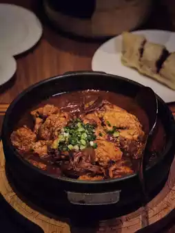 Made in an open kitchen, served in a heated iron pan. The buns are golden and crispy, with a slightly charred aroma. Take a bite and hear the crunch. The filling is tender and juicy, bursting with flavor. Pair it with the special ginger vinegar for a refreshing and delicious taste!