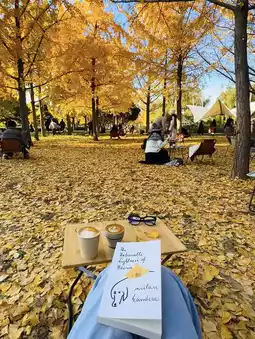 Grab a cup of warm coffee, find a spot under the ginkgo trees, and simply breathe. ☀️ It’s the kind of place that invites you to slow down, read a book, or just sit in silence while the world outside rushes on. 📖