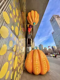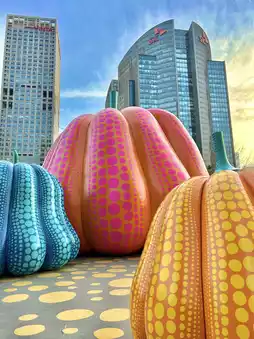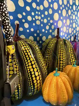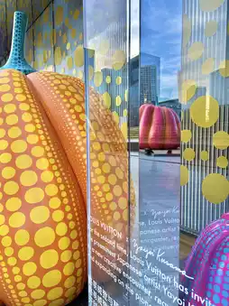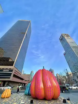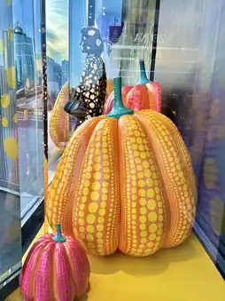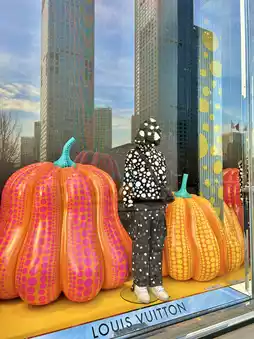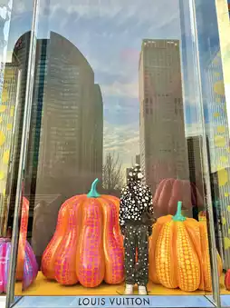 In 2023, Louis Vuitton enjoyed an excellent collaboration with the world famous Japanese artist Yayoi Kusama. The collection has become not beige and brown, but bright and cheerful. The most interesting is outside the shop on the street. There are large pumpkins in the style of this artist. They are very bright and beautiful against the blue sky. This can be seen in the center of Beijing near the Louis Vuitton store, which is located in the China World Mall (No 1, Jianguomen Outer Street (Guomao Subway Station Entrance and Exit Pedestrian 80 meters), Chaoyang, Beijing. You can also go to the store and see what's inside.