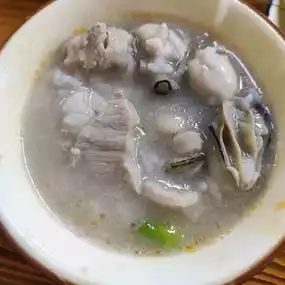 Dinner tonight: fried clams, fried eels, raw pickled shrimps & oyster porridge. It was my first time to eat seafood marinated raw (shrimp), fragrant sesame oil & spicy, very delicious and special.