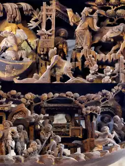 2️⃣ Then enter the main hall's Yanqing Hall, where there is a specific introduction to the temple's wood carving craftsmanship, including folk stories, traditional customs, opera performances, such as 'Top Scholar', 'Water Flooding Jinshan', 'Li Yuanba Carrying a Jar', 'Eight Immortals Crossing the Sea', etc. Remember these locations, and later on, try to find them according to the guide - see if you can locate all of them 😏😁.