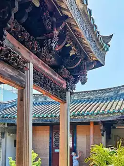 Built during the Guangxu period of the Qing dynasty, it is a two-entry courtyard, including the main hall, a patio, and a worship pavilion. The temple is not large, but it is definitely a treasure trove, reflecting the architectural characteristics of Chaoshan residential buildings, and it is also a palace of art for Chaozhou's intangible cultural heritage wood and stone carvings!