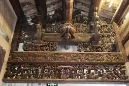 Jilue Huang Ancestral Hall is a hall of Chaozhou wood carving art. The vivid and lifelike auspicious animals such as dragons, phoenixes, and lions, as well as opera legends and folk stories, are exquisitely carved. The carving techniques include round carving, sunken carving, relief carving, and openwork carving, which vividly express complex multi-layered content. The exterior colors fully utilize three major techniques: black lacquer with gold, polychrome with gold, and plain carving, making the entire building distinct in weight and layers. It is therefore known as "a masterpiece of Chaozhou wood carving."