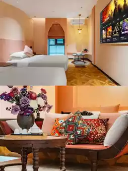 The rooms combine Moroccan style with ethnic elements to create a unique pink girlish style. The spacious and bright space, with a soft and comfortable tatami bed, shows ingenuity in every detail. The bathroom is dry and wet separated, with complete facilities, providing a first-class accommodation experience.