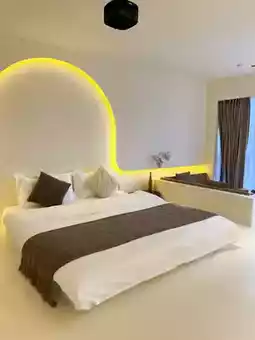 You don't have to worry about being disturbed at night. The surroundings are quiet, and the room is soundproof. The bed is comfortable, and you can sleep well. You can also watch movies on the projector.