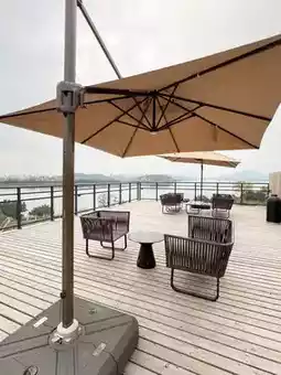 There is a dedicated parking lot, and the staff will help you with your luggage. 🧳 So sweet! The first floor and terrace are public areas, and are great for taking photos. They have coffee, lattes, and more. You can also work or read on the first floor. The environment is warm and quiet. You can see the Han River from the rooftop, and there are swings. It's so romantic to watch the sunset. It's also great to enjoy the breeze at night.