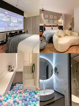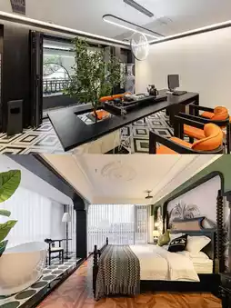 As soon as you enter, you will be attracted by the retro Nanyang villa x&Chinese-style patio 🤩, which is full of blue and white porcelain elements. Check in and take photos to make great photos📷! Bathtub king room, twin room, parent-child slide room, children love it🧒