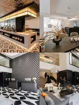 The black and white Bulgari-style decor is very upscale.