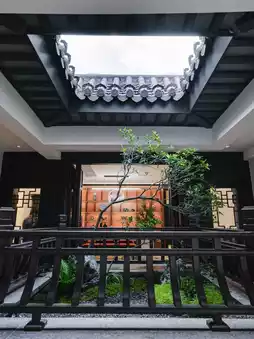 The Chinese courtyard design and blue and white porcelain elements are incredibly beautiful.