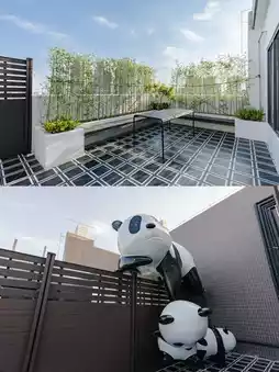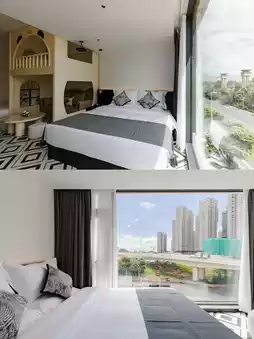 Panda theme × black and white Bulgari style‼️ The main panda theme uses a lot of luxurious stone for decoration, which feels really high-quality. Outside the window is the river view and Chaozhou's internet-famous bridge. The hotel is very close to all the attractions!