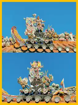 On the 1st and 15th of each lunar month, a spectacular "pig race" unfolds in front of the temple. Whole steamed pigs adorned with large red flowers, accompanied by Chaozhou oranges and Fa Gao (steamed prosperity cake), represent the Chaoshan people's most devout prayer ritual. The temple becomes even livelier during the Zhengyue parade. Lord Qinglong is carried on a palanquin, and wherever he goes, gongs and drums resound. Yingge dancers, with yellow faces and black robes, brandish sticks and stomp their feet like tigers descending a mountain.