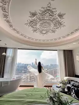 The 180° panoramic floor-to-ceiling windows offer stunning views. You can enjoy the beautiful scenery of the ancient city, including sunrise 🌅 and sunset, right from your bed!