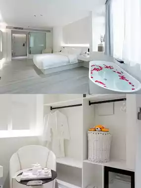 💒The overall design is pure white, clean, and cozy. There are king beds, double beds, and rooms with bathtubs...