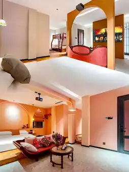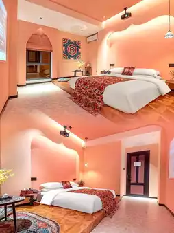 The rooms blend Moroccan aesthetics with ethnic minority elements, creating a unique pink-toned, girly vibe. Spacious and bright, the tatami beds are soft and comfortable, with meticulous attention to detail. The bathrooms are well-equipped with separate wet and dry areas, offering a top-notch stay.