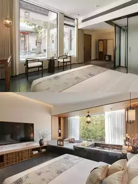 Immersive Song Dynasty aesthetic experience in this historic Liao family mansion. Features two century-old longan trees in courtyard - full of antique charm! Super photogenic!! Located at the heart of Chaozhou Ancient City, walking distance to all attractions. Multiple room types with floor-to-ceiling windows, mini fridges, projectors/TVs, sunken bathtubs - so cozy!