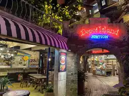The site is lined with numerous commercial facilities, offering shopping, dining, and more. ♪