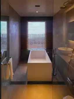 Its natural Chatan hot springs, stylish pool, and highly rated breakfast are its attractions.