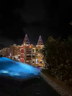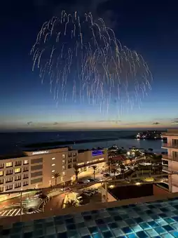 The sparkling night view of American Village and the fireworks from the wonderful pool were amazing!