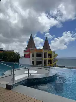 This pool is an ocean view pool, and it has a great view of American Village, and it was a wonderful pool that made me feel like I was traveling abroad 🤍