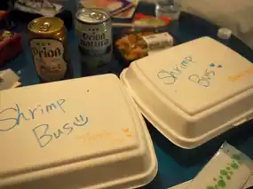 I got takeout garlic shrimp from Shrimp Bus in the Mihama Depot Central Building.