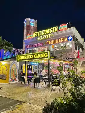 It is a tourist destination filled with restaurants, gift shops, movies, hotels, and more.